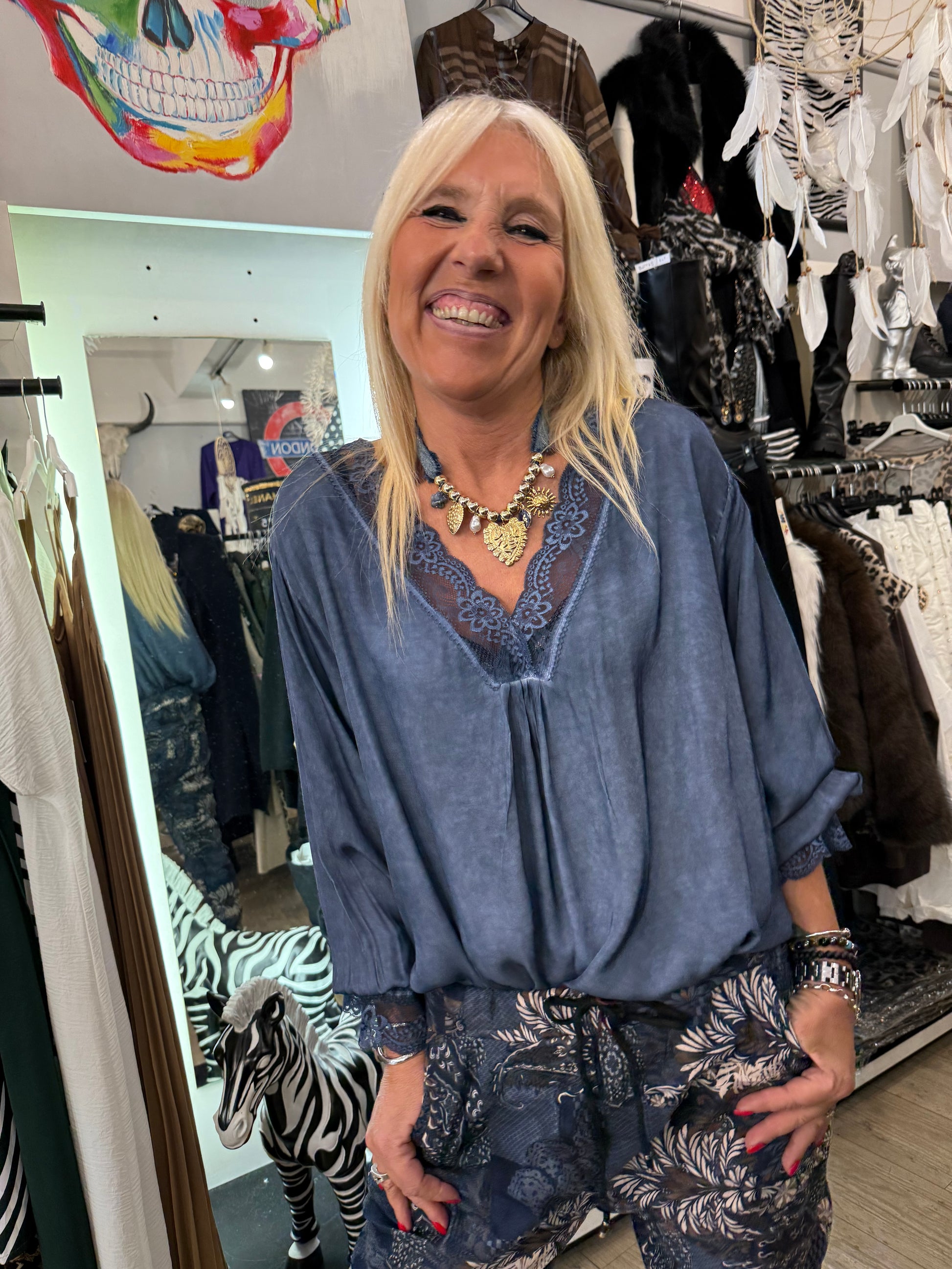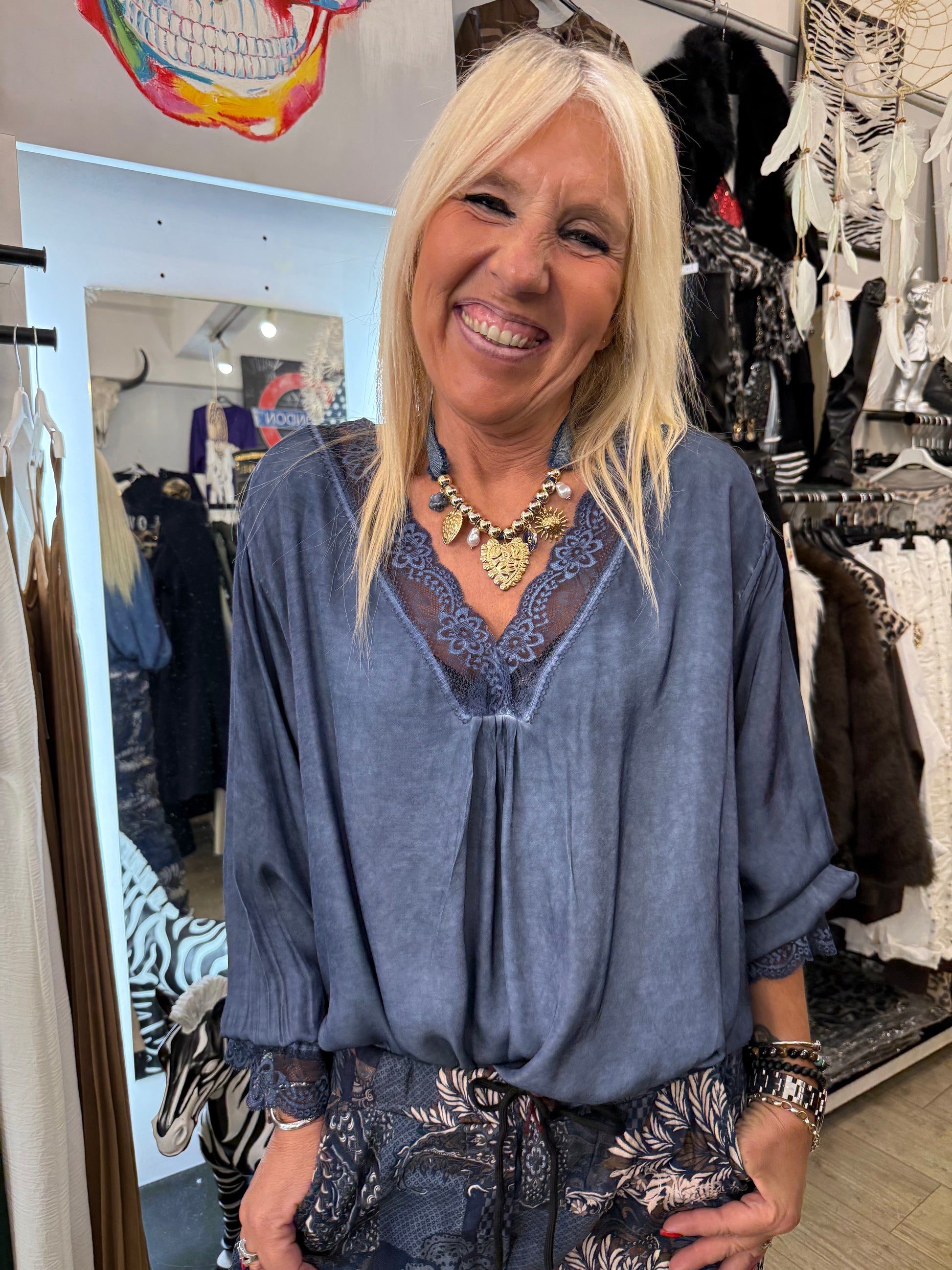 Top dentelle gde taille marine poignet dentelle