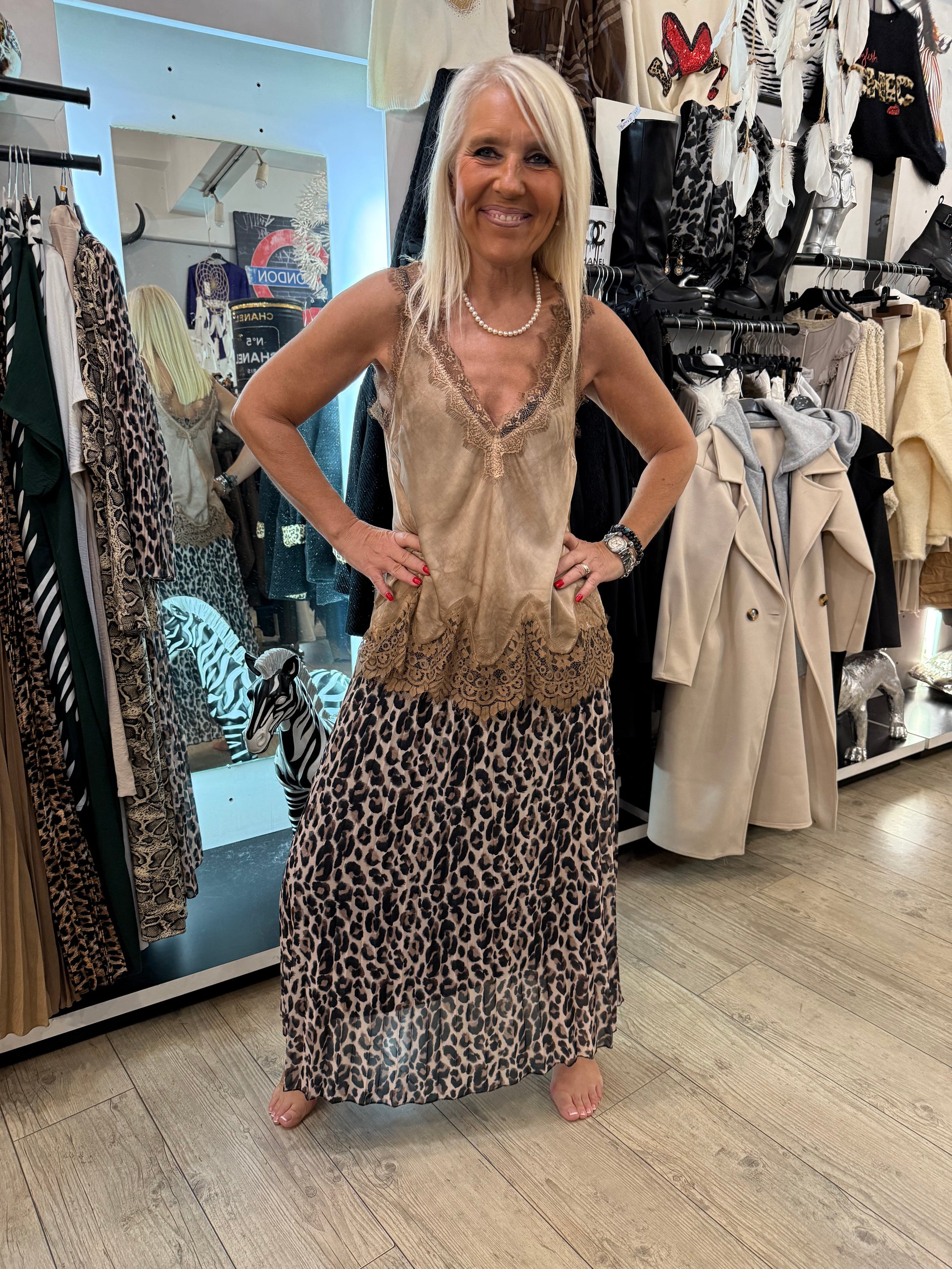 Top dentelle tabac