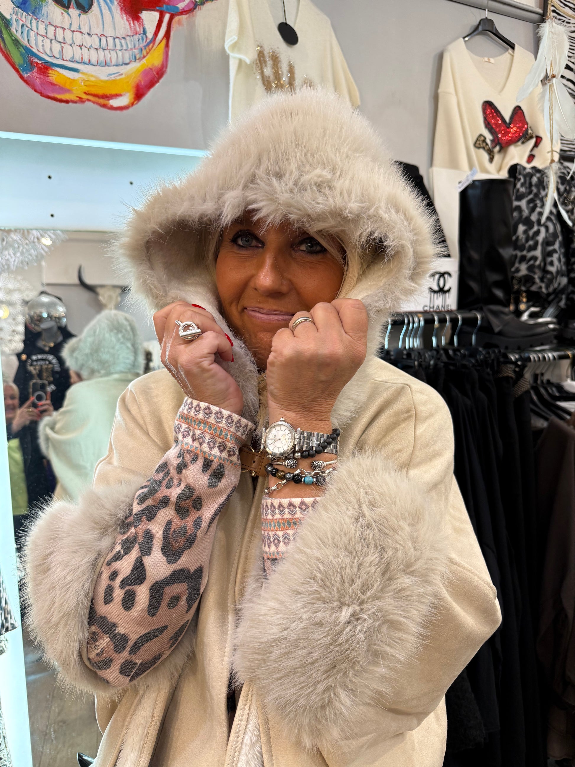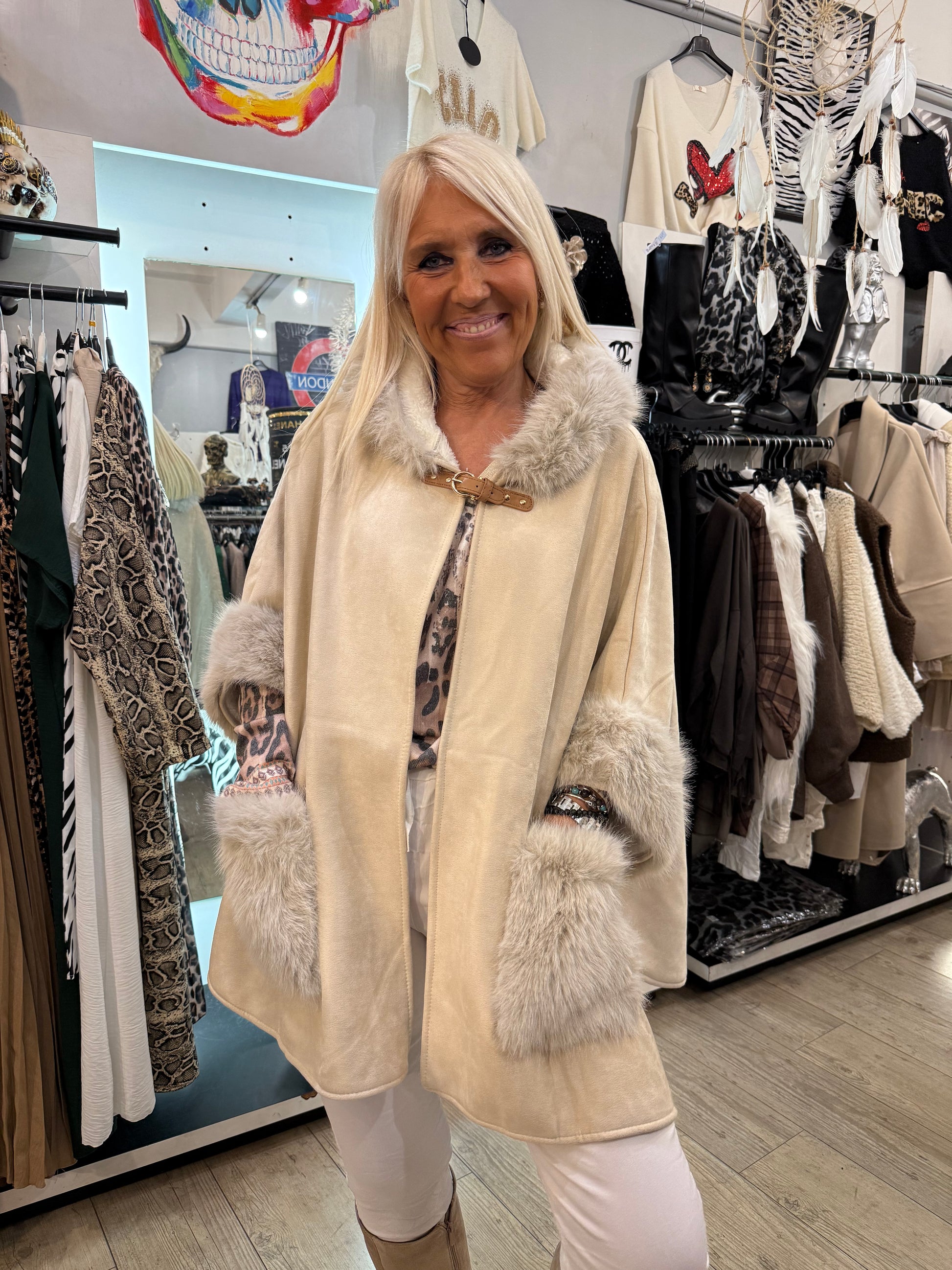 Manches évasées en fausse fourrure